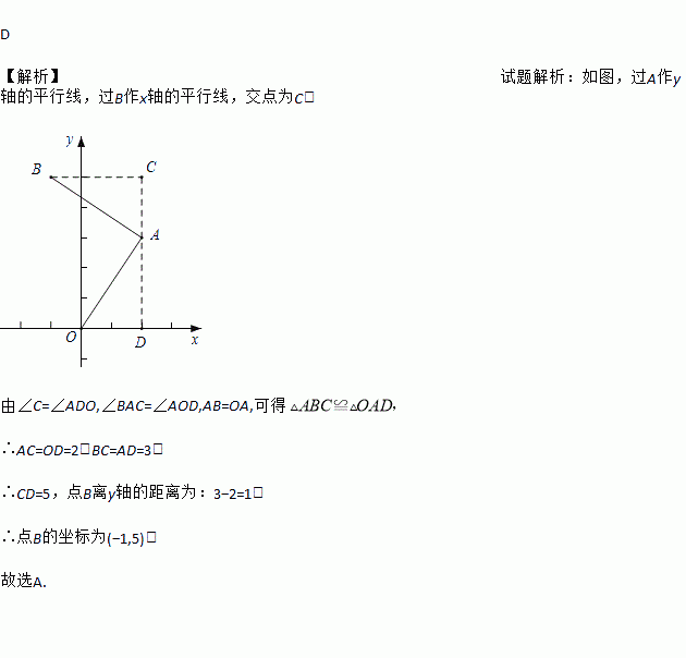已知点A的坐标为(2,3),O为坐标原点,连接OA,将线段OA绕点A按顺时针方向旋转90°得AB,则点B的坐标为( )