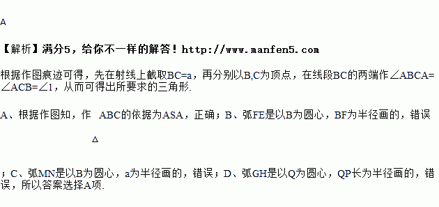 如图1,已知线段a,∠1,求作△ABC,使BC=a,∠ABC=∠BCA=∠1,张蕾的作法如图2所示,则下列说法中一定正确的是( )