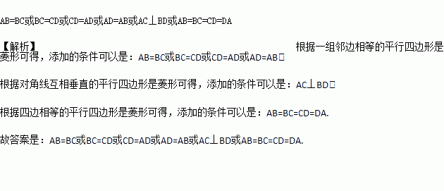 如图,在ABCD中,对角线AC,BD相交于点O,若再增加一个条件,就可得出ABCD是菱形,则你添加的条件是___________.