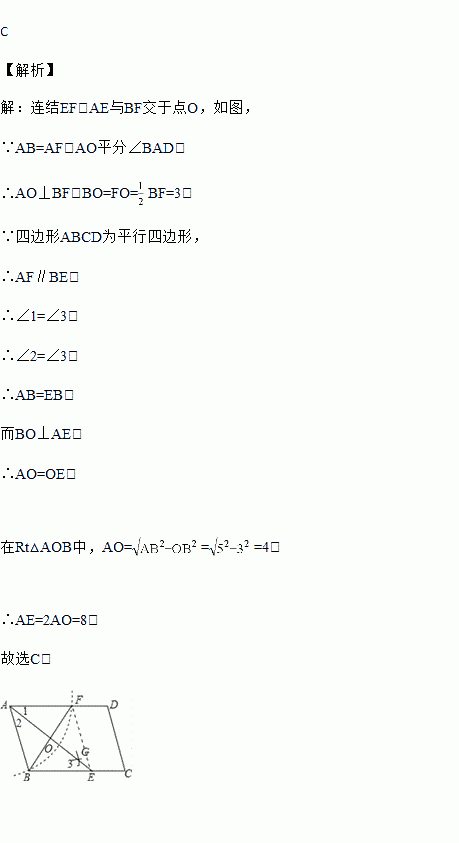 如图,在平行四边形ABCD中,用直尺和圆规作∠BAD的平分线AG交BC于点F,若BE=6,AB=5,则AF的长为( )