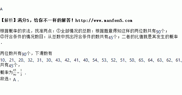 定义:一个自然数,右边的数字总比左边的数字小,我们称之为“下滑数”(如:32,641,8531等).现从两位数中任取一个,恰好是“下滑数”的概率为( )