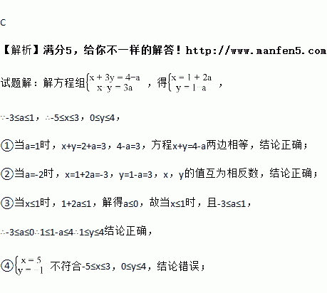 ,其中-3≤a≤1,给出下列结论:①当a=1时,方程组的解也是方程x+y=4-a的解;