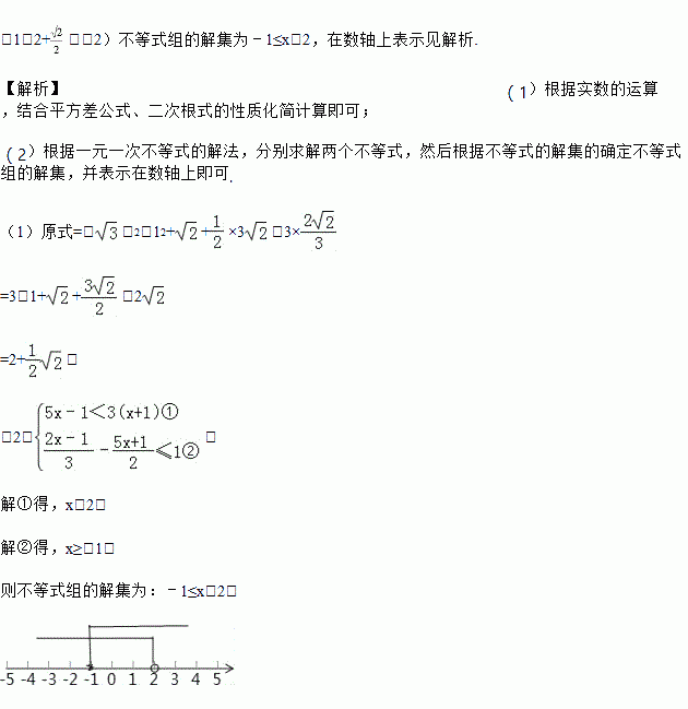(2)解不等式组,并在数轴上表示它的解集: