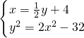 +4cm,大正方形的面积=小正方形的面积×2-32cm2,根据这两个等量关系列出方程组.