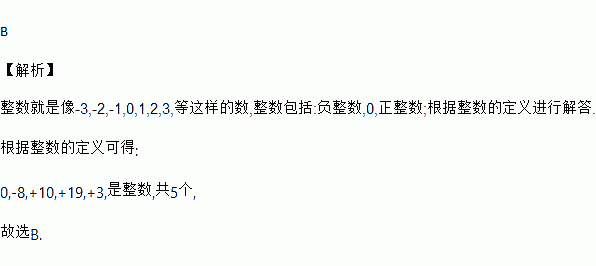 ,–8,+10,+19,+3,–3.4中,整数的个数是( )
