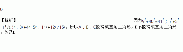 A. =9 =41 =40 B. ==5 =5 C. ::=3:4:5 D. =11 =12 =15