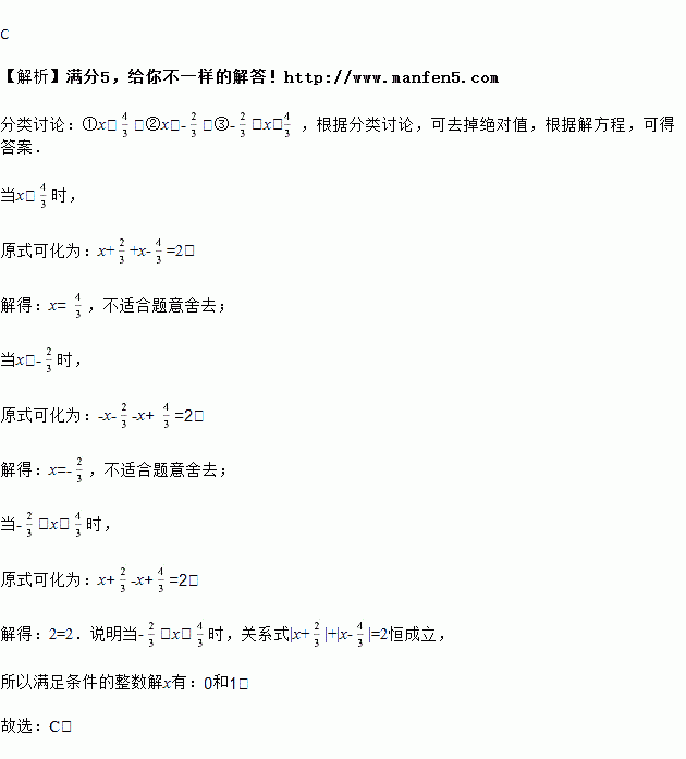 适合关系式的整数解的个数是( )