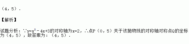 (4,5). 【解析】 试题分析:∵y=x2﹣4x+3的对称轴为x=2,∴点P(0,5)关于该抛物线的对称轴对称点Q的坐标为(4,5),故答案为:(4,5).