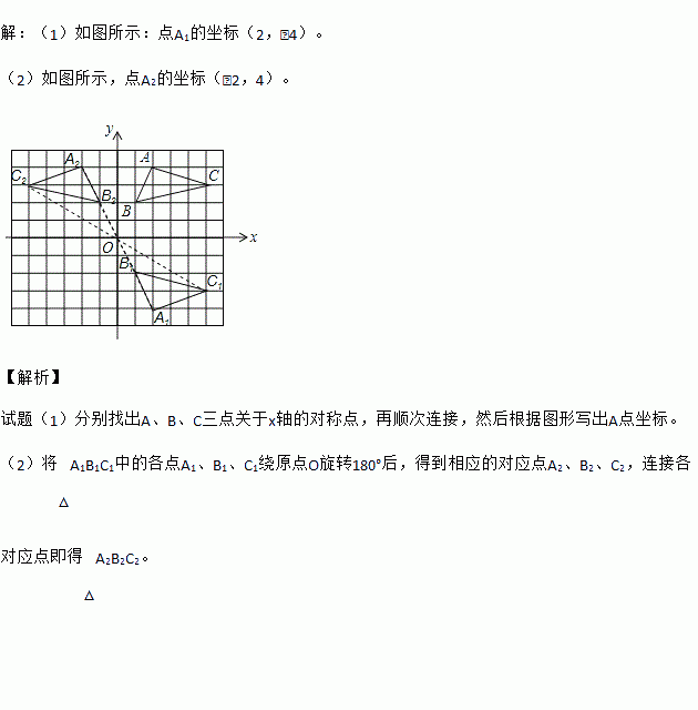 (2)画出△A1B1C1绕原点O旋转180°后得到的△A2B2C2,并写出点A2的坐标.