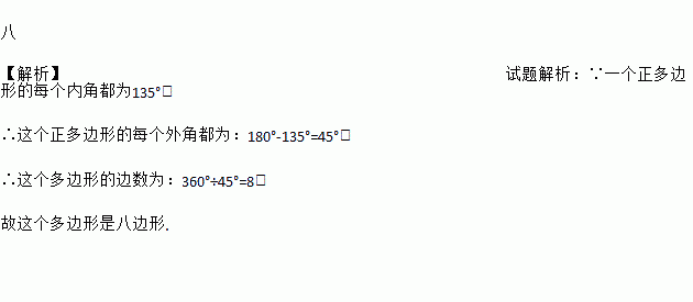 一个多边形的每个内角都等于135°,则这个多边形是__________________边形.