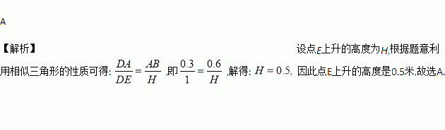 如图所示为农村一古老的捣碎器,已知支撑柱AB的高为0.3米,踏板DE的长为1米,支撑点A到踏脚D的距离为0.6米,原来捣头点E着地,现在踏脚D着地,则捣头点E上升了( )