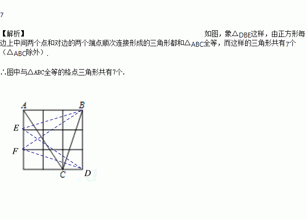如图,方格纸中的个顶点分别在小正方形的顶点(格点)上,这样的三角形叫格点三角形,图中与全等的格点三角形共有____个(不含).