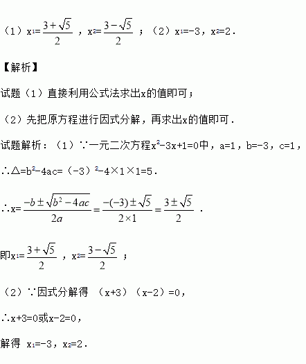 (1)x2-3x+1=0;