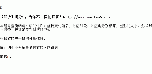 国旗上的四个小五角星,通过怎样的移动可以相互得到( )
