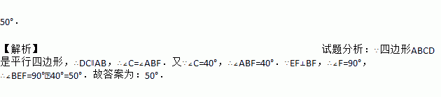 如图所示,在?ABCD中,∠C=40°,过点D作AD的垂线,交AB于点E,交CB的延长线于点F,则∠BEF的度数为__.