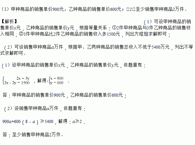 (2)若甲、乙两种商品的销售总收入不低于5400万元,则至少销售甲种商品多少万件?