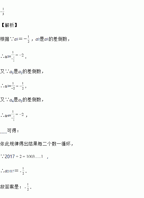 ,x2是x1的差倒数,x3是x2的差倒数,x4是x3的差倒数,…,依此类推,则 x2017=________.