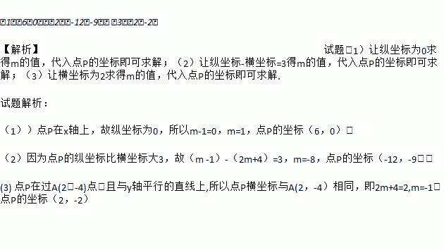 (3)点P在过点A(2,-4)且与y轴平行的直线上.