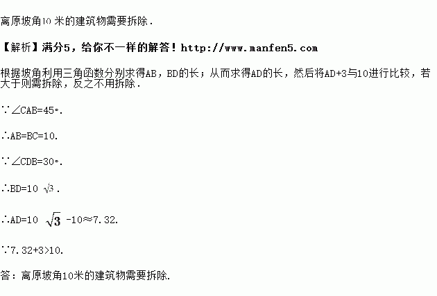 米的建筑物是否需要拆除?(参考数据:![]()