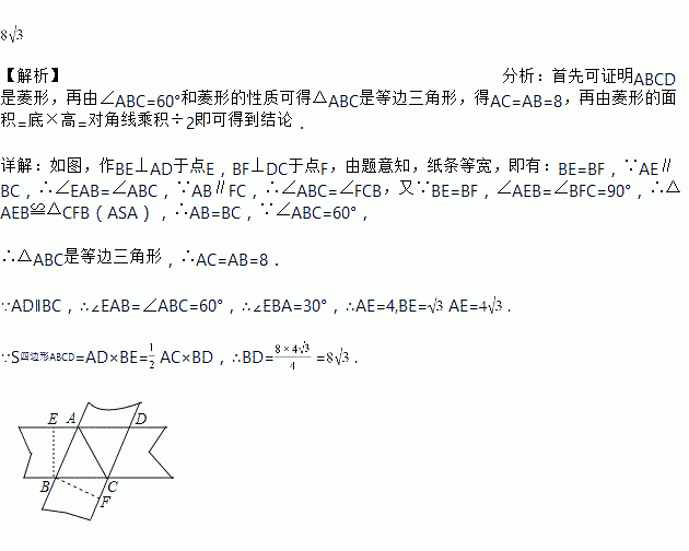 如图所示,将两条等宽的纸条重叠在一起,得到四边形,若,则___.