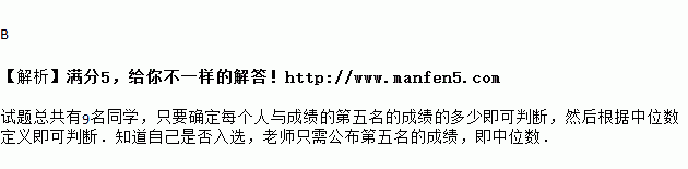 某班要从9名百米跑成绩各不相同的同学中选4名参加4×100米接力赛,而这9名同学只知道自己的成绩,要想让他们知道自己是否入选,老师只需公布他们成绩的( )