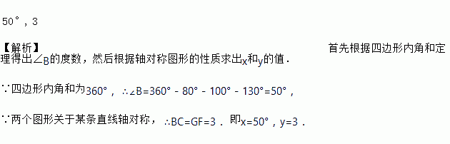 如图中的两个四边形关于某直线对称,根据图形提供的条件,可得x=___,y=__.