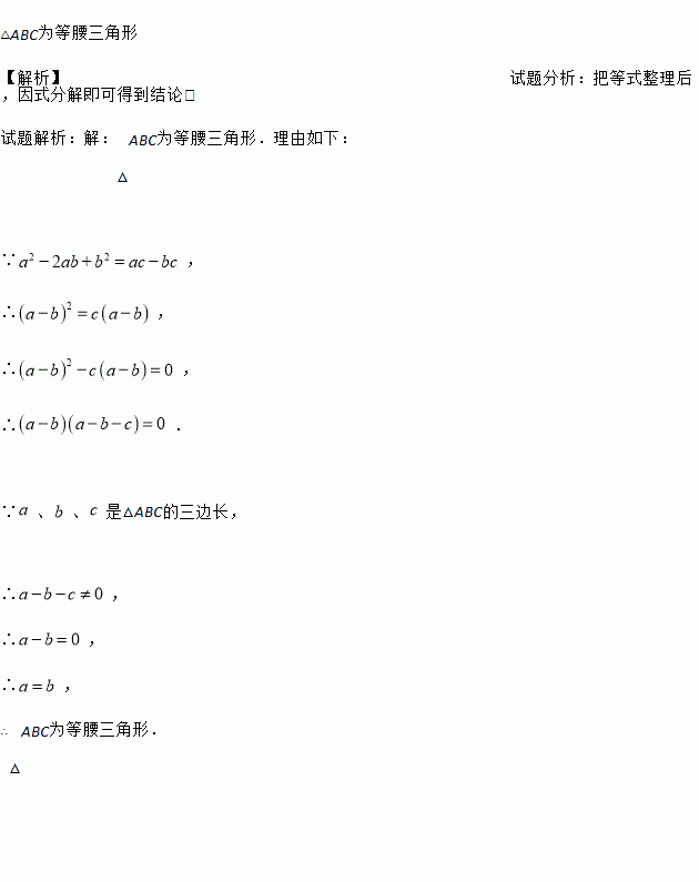 已知△ABC的三边长, , 满足,试判断△ABC的形状,并说明理由.