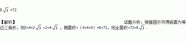 一个几何体的三视图如图所示,根据图示的数据计算该几何体的全面积为_________.