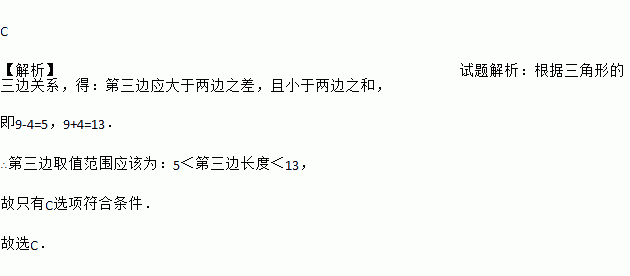 在下列长度的四根木棒中,能与4cm、9cm长的两根木棒钉成一个三角形的是( )