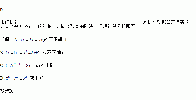 A. 5x ? 3x ? 2 B. (x ?1)2 ? x2 ?1 C. (?2x2 )3? ?6x6 D. x6 ? x2 ? x4