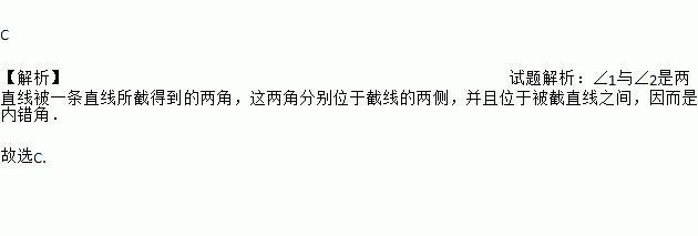A. 对顶角 B. 同位角 C. 内错角 D. 同旁内角
