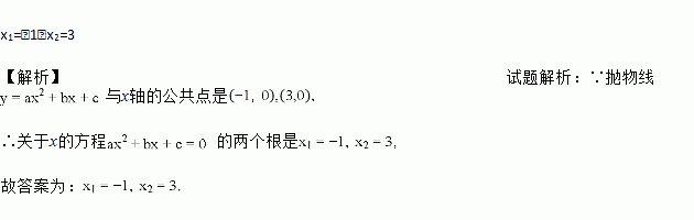 抛物线y=ax2+bx+c与x轴的公共点是(﹣1,0),(3,0),则关于x的方程ax2+bx+c=0的两个根是_____.