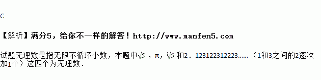 在实数、、0、、、、、、2.123122312223…… (1和3之间的2逐次加1个)中,无理数的个数为 ( )