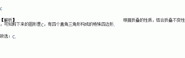 将一张圆形纸片对折后再对折,得到下图,然后沿着图中的虚线剪开,得到两部分,其中一部分展开的平面图形是