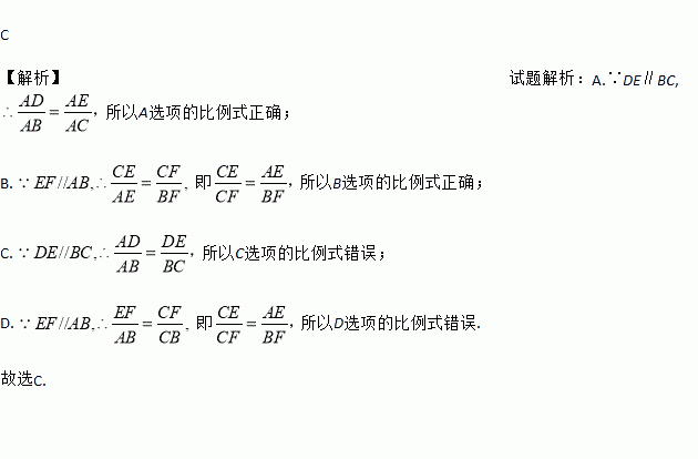 如图,已知DE//BC,EF//AB,则下列比例式中错误的是( )