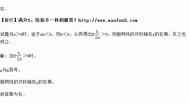 抛物线y=ax2+bx+c中,ab<0,则此抛物线的对称轴在y的 侧(填:左或右).