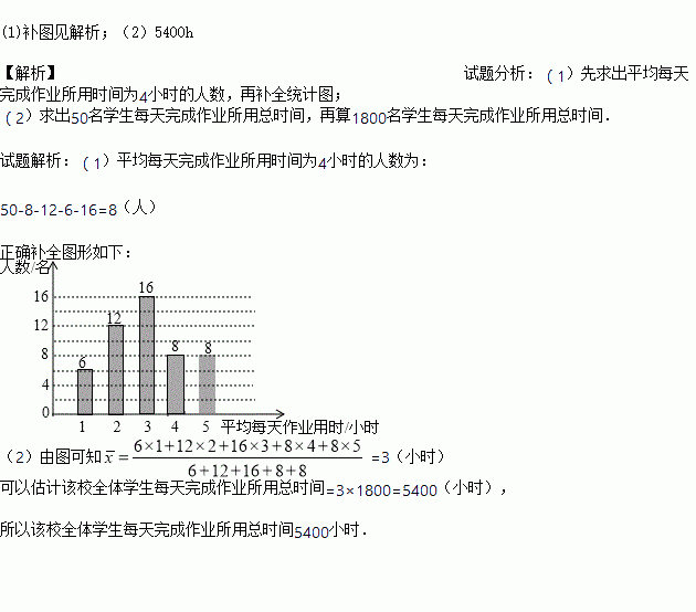 (2)若该校共有1 800名学生,根据以上调查结果估计该校全体学生平均每天完成作业所用总时间.