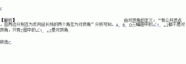 下列图形中,∠1与∠2是对顶角的是( )