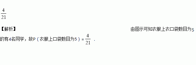 如图表示某班21位同学衣服上口袋的数目.若任选一位同学,则其衣服上口袋数目为5的概率是__.