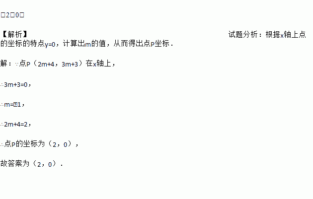 若点P(2m+4,3m+3)在x轴上,则点P的坐标为________
