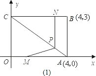 如图,在平面直角坐标系中,四边形OABC为长方形,点A,B的坐标分别为(4,0),(4,3),动点M,N分别从点O,B同时出发,以每秒1个单位的速度运动,其中点