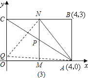 (3)当S=1.5时,N在BC的中点处,设Q(0,y)利用勾股定理证明△QAN为等腰三角形.分三种情况讨论等腰三角形的边长:①若AQ=AN,则42+y2=32+22,此时方程无解;②若AQ=QN,即42+y2=22+(3-y)2,得