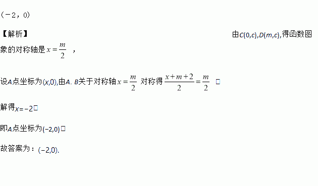 如图,抛物线y=ax2+bx+c与x轴相交于点A、B(m+2,0),与y轴相交于点C,点D在该抛物线上,坐标为(m,c),则点A的坐标是________.