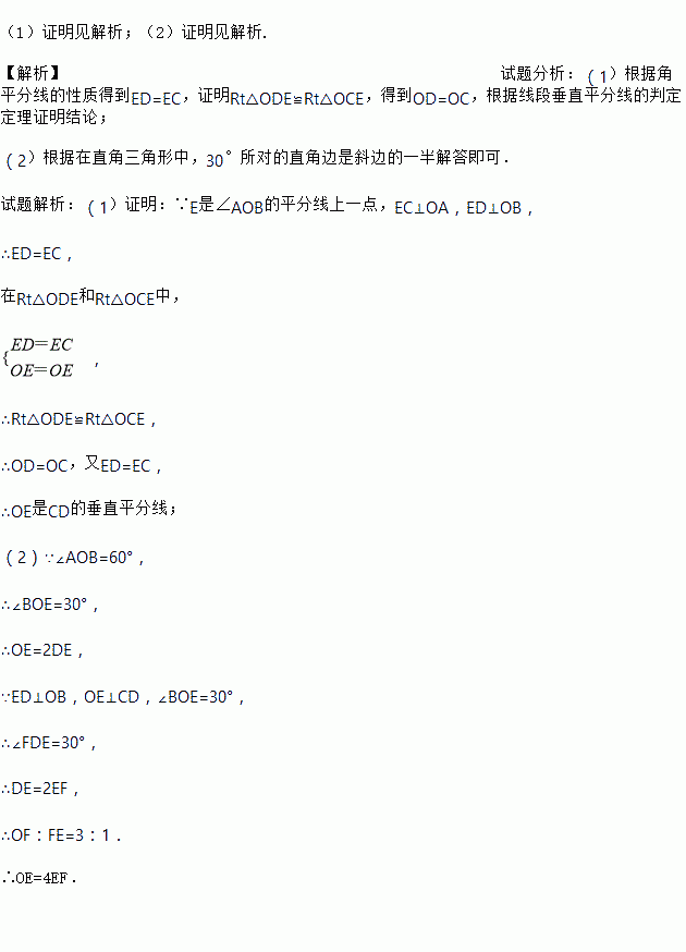 (1)求证:OE是CD的垂直平分线.
