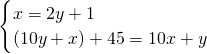 分析:本题中2个等量关系为:个位数字=2×十位数字+1;(10×十位数字+个位数字)+45=10×个位数字+十位数字.根据这两个等量关系可列出方程组.