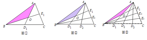 设△ABC的面积为1,如图①将边BC、AC分别2等份,BE1、AD1相交于点O,△AOB的面积记为S1;如图②将边BC、AC分别3等份,BE1、AD1相交于点O,△AOB的面积记为S2;……, 依此类推,则S5的值为( )