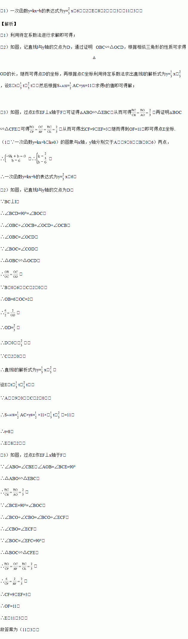 如图,一次函数y=kx+b(k≠0)的图象与x轴,y轴分别交于A(﹣9,0),B(0,6)两点,过点C(2,0)作直线l与BC垂直,点E在直线l位于x轴上方的部分.