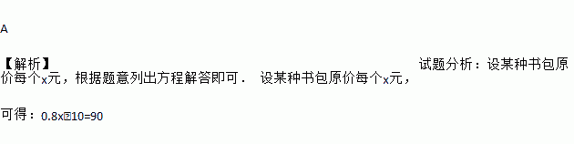 A 【解析】试题分析:设某种书包原价每个x元,根据题意列出方程解答即可. 设某种书包原价每个x元, 可得:0.8x﹣10=90