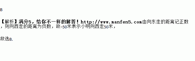 A. 向西走40米 B. 向西走50米 C. 向西走-50米 D. 向东走50米