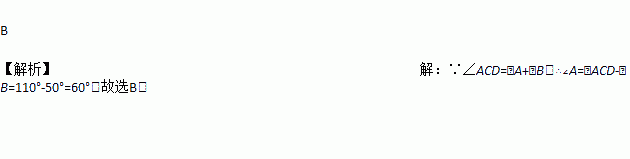 如图,B、C、D三点共线,∠B=50°,∠ACD=110°,则∠A的度数为( )